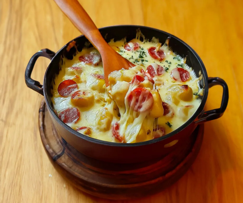 Toto fondue je také príťažlivé vďaka svojej všestrannosti. Môžete ho podávať s dusenými zemiakmi pre rustikálny nádych, s ryžou pre ľahšie jedlo alebo s cestovinami pre extra lahodnú verziu. Je to recept, ktorý sa ľahko prispôsobí vašim preferenciám a ingredienciám, ktoré máte poruke. Je rýchly na prípravu, vyžaduje minimálne umývanie riadu a je ideálny na nedeľný obed alebo rušnú večeru počas týždňa.