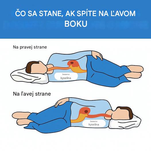 Často je to obľúbená poloha… ale vyžaduje si určité opatrenia. Neustále ležanie na pravom boku môže zhoršiť reflux kyseliny, zatiaľ čo ležanie na ľavom boku môže viac zaťažovať srdce. Trik? Striedajte strany podľa toho, ako sa cítite, a medzi kolená si umiestnite vankúš, aby ste udržali správne zarovnanie panvy a chrbtice.
