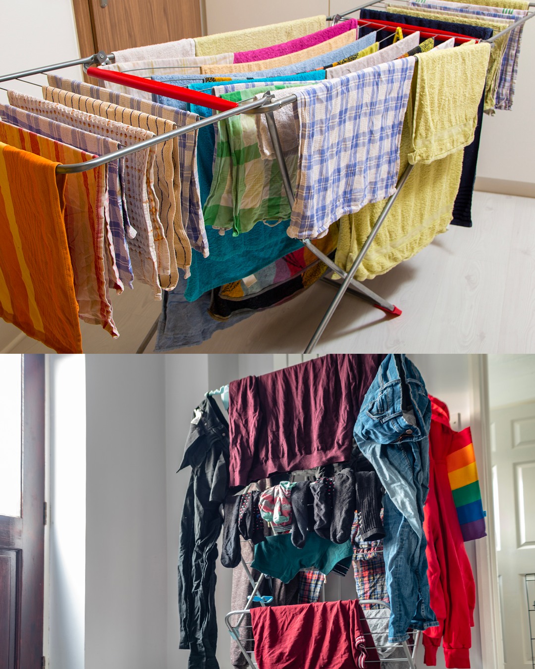 Na tento jednoduchý trik sa často zabúda, ale skutočne má význam: vezmite každý kus oblečenia a pred vložením na sušičku ho dôkladne pretrepte. Tým sa uvoľnia vlákna a odstránia sa všetky zvyšné kvapky vody. Výsledok? Bielizeň schne rýchlejšie a má menej pokrčených tkanín. A menej pokrčených tkanín znamená menej žehlenia… a to milujeme!